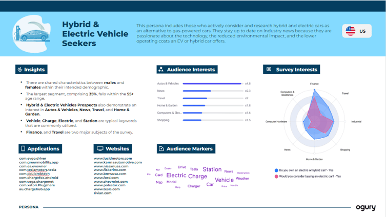 - Exclusive Survey Insights: Our unique surveys, representing 1.5 billion data points and featuring self-declared consumer data, provide unbiased audience information you won’t find anywhere else. This zero-party data – data collected directly from consumers that users intentionally and proactively share with us – provides valuable information that can be used to develop your audience targeting strategy. Our tool showcases the tailored survey questions we use to build our rich personas.